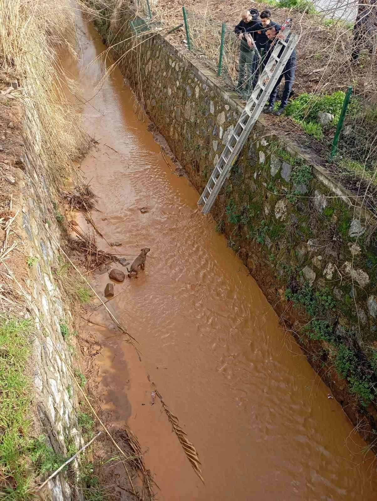 Aydın’ın Efeler ilçesinde sulama kanalına düşen köpeği Aydın Büyükşehir Belediyesi İtfaiye Daire Başkanlığı ekipleri kurtardı. Olay, Balıkköy Mahallesi yolu üzerinde meydana geldi. Edinilen bilgiye göre, bir sokak köpeği sulama kanalına düştü. Köpeğin kanala düştüğünü fark eden vatandaşlar kendi imkanları ile köpeği kanaldan çıkartamayınca durumu 112 Acil Çağrı Merkezi’ne bildirdi. İhbar üzerine bölgeye Aydın Büyükşehir Belediyesi İtfaiye Daire Başkanlığı ekipleri sevk edildi. Kısa sürede olay yerine gelen itfaiye ekipleri köpeği kurtarmak için çalışma başlattı. Kanala inen ekipler köpeği kanaldan kurtardı. İtfaiye ekipleri tarafından koruma altına alınan köpek Aydın Büyükşehir Belediyesi Evcil Hayvan Bakım ve Rehabilitasyon Merkezi’ne teslim edildi.
