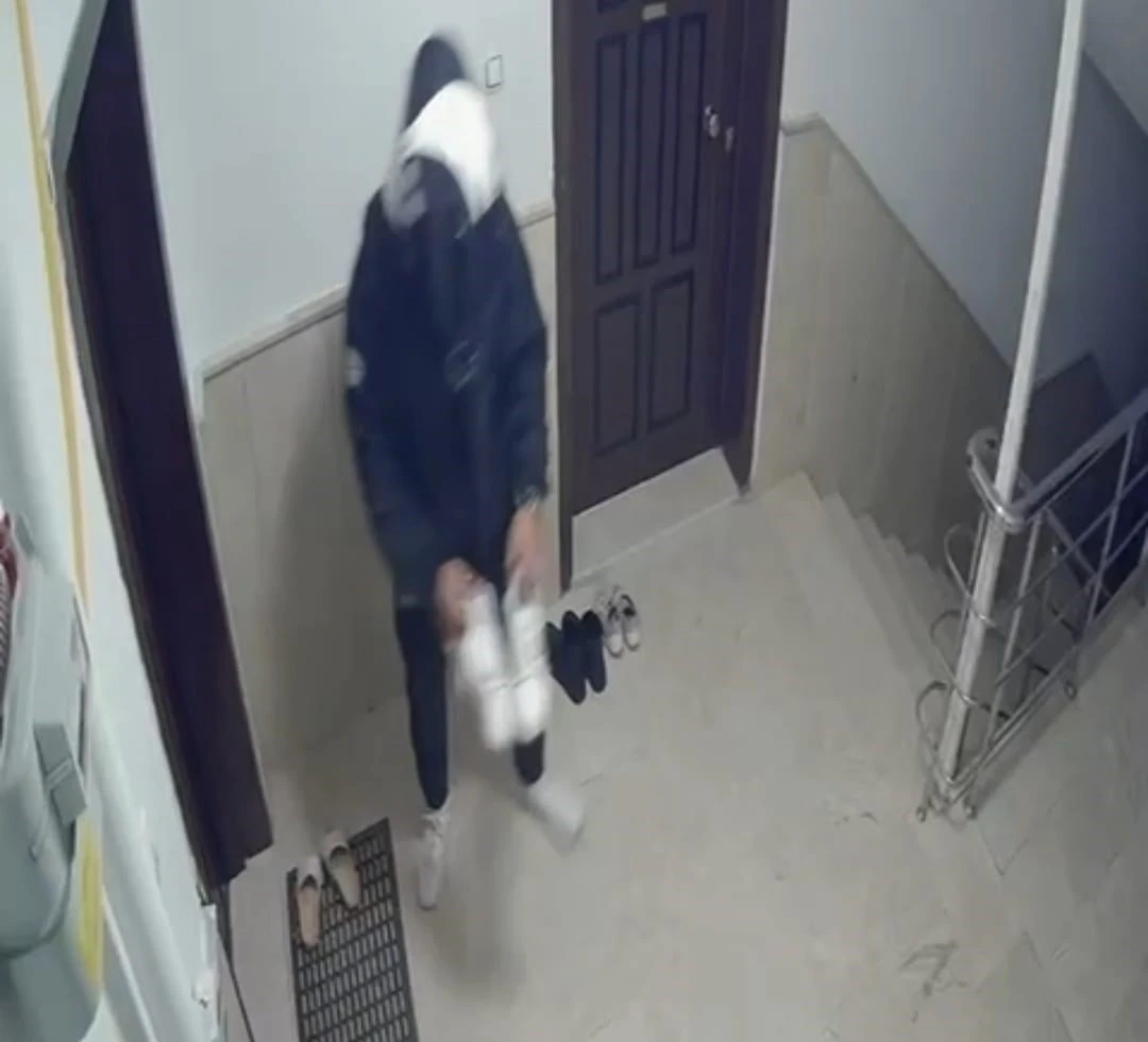 Ankara’da bir kuryenin sipariş için geldiği apartmandaki bir dairenin önündeki ayakkabı çaldığı anlar güvenlik kamerasına yansıdı.