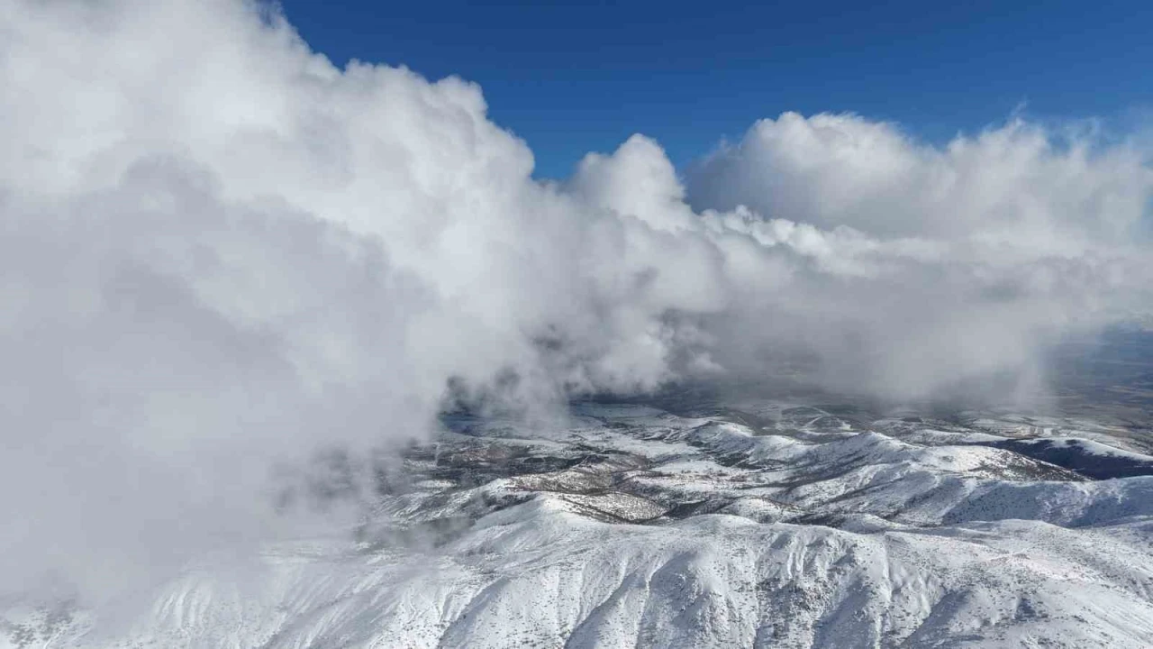 Soğuk havanın etkili olduğu Dinek Dağı’nda, karla kaplanan zirve ve yoğun bulutlar havadan görüntülendi. Beyaza bürünen dağ silueti, bulutların arasından yükselen manzarasıyla görsel şölen sundu. Yüksek kesimlerde kışın tüm güzelliğini yansıtan doğa, havadan çekilen görüntülerle gözler önüne serildi.