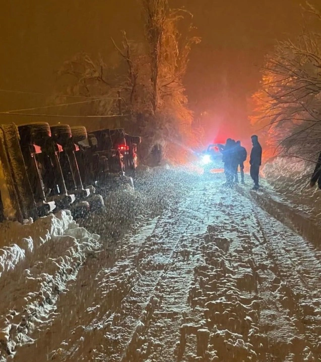 Adıyaman’ın Çelikhan ilçesinde CNG Tankeri yoğun kar yağışında kayarak şarampole devrildi.
