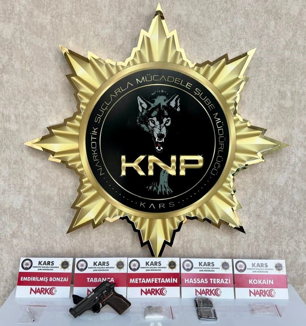 Kars Cumhuriyet Başsavcılığı koordinesinde Kars Emniyet Müdürlüğü Narkotik Suçlarla Mücadele Şube Müdürlüğü’nce kent merkezinde Sokak Satıcıları (Torbacı) olarak tabir edilen uyuşturucu madde satıcılarına yönelik 1 aparta operasyon düzenlendi. Düzenlen operasyonda yapılan aramada, 31,23 gram Metamfetamin, 0,85 gram Kağıda Emdirilmiş Bonzai, 0,76 gram Kokain, 1 hassas terazi, 1 ruhsatsız tabanca ve 1 şarjör ele geçirilerek muhafaza altına alındı.