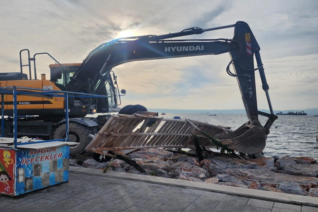 Karşıyaka sahilinde Kıyı ve İmar Kanunu’na aykırı şekilde inşa edilen izinsiz platform ve ahşap iskelelerin yıkımına başlandı. İzmir Büyükşehir Belediyesi Hemşehri İletişim Merkezi (HİM) ve Cumhurbaşkanlığı İletişim Merkezi’ne (CİMER) yapılan başvurular doğrultusunda, Bostanlı Balıkçı Barınağı ile Deniz Kafe arasında kalan kıyı bölümünde Kıyı Kanunu ve İmar Kanunu’nun ilgili yönetmeliklerine aykırı şekilde izinsiz yapılan platformlar ve ahşap iskeleler kaldırılıyor. Bu bölgede oluşturulan düzeneklerin üzerine masa konulmak suretiyle özellikle geceleri izinsiz ticari faaliyetlerin gerçekleştirilmesi ve çevrede yaşayan vatandaşların şikayetleri doğrultusunda harekete geçildi. Belediyeye bağlı Yapı Kontrol Dairesi Başkanlığı koordinesindeki ekiplerin tespitleri çerçevesinde yıkımlar başladı. Yetkililer, mevzuat kapsamında Karşıyaka Kaymakamlığı, Sahil Güvenlik Komutanlığı, İlçe Emniyet Müdürlüğü, Liman Dairesi Başkanlığı ve ilgili birimlerin temsilcileri ile toplantı yaparak işlem hakkında bilgilendirmede bulundu. Karar süreci hakkında
