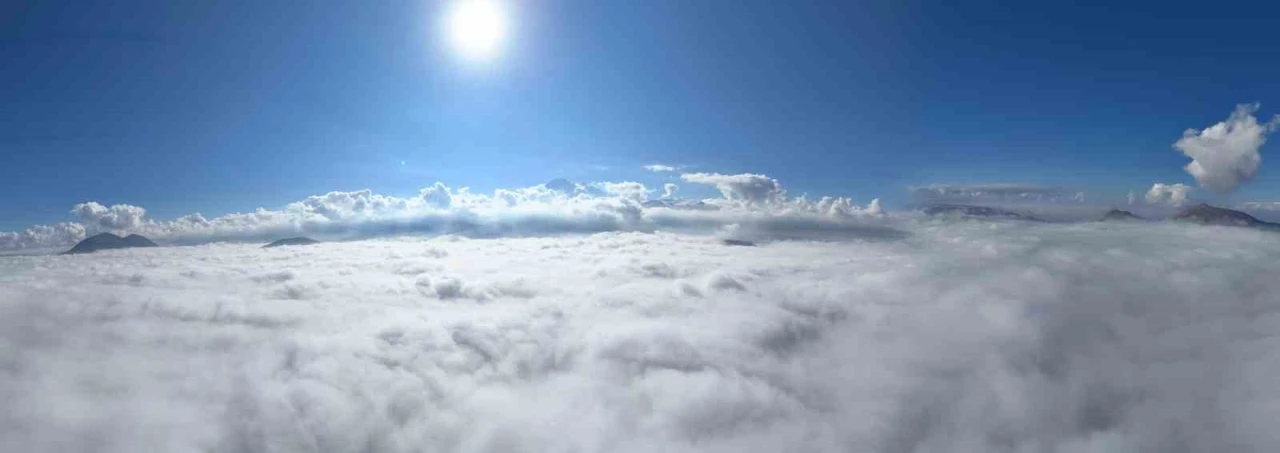 Sisin etkili olduğu Kayseri’de bulutların üzerinden çekilen görüntüler izleyenleri mest etti.