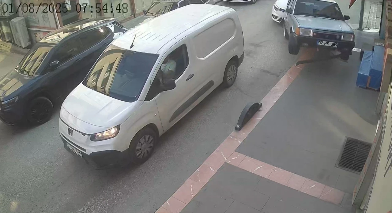 Kaza anı bir iş yerinin güvenlik kamerasına yansıdı. Görüntülerde, 37 ADA 745 plakalı otomobilin önünde seyreden araca arkadan çarptıktan sonra yoluna devam ettiği, Fiat-Tofaş marka aracın ise kontrolden çıkarak iş yerine çarptığı görülüyor.