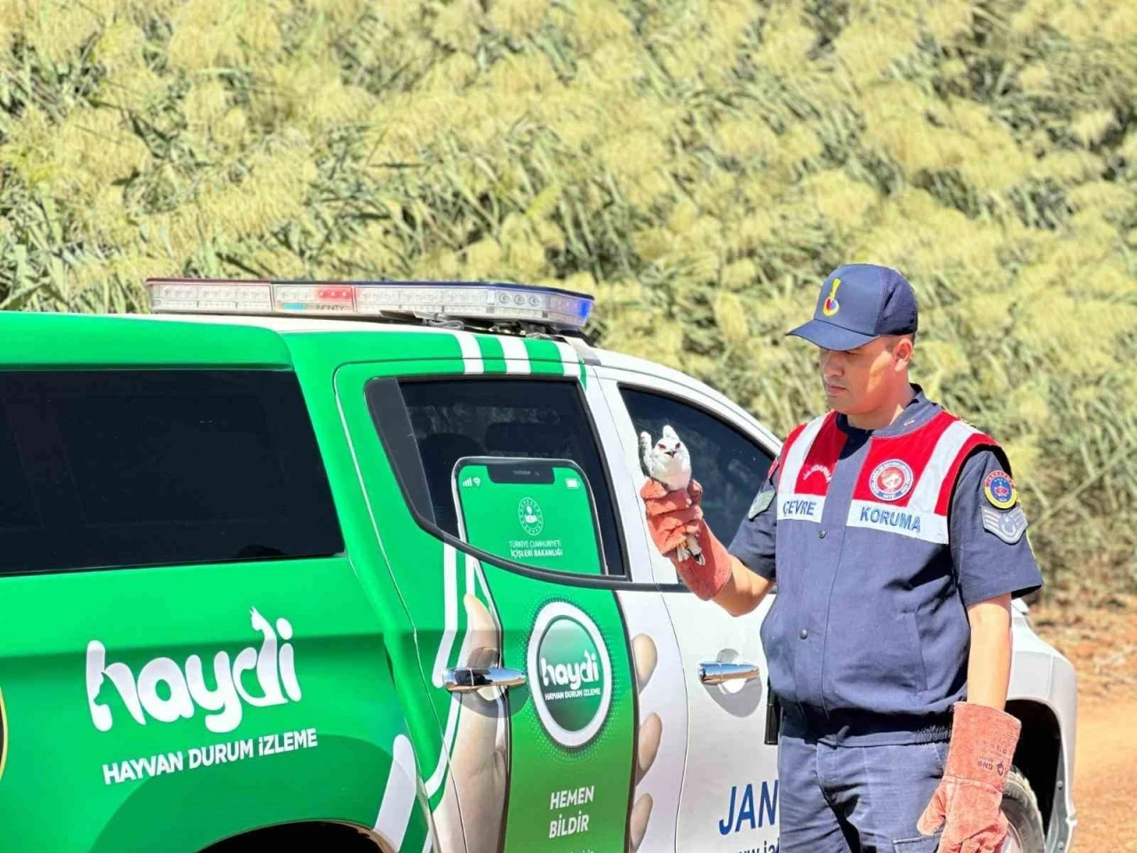 Kilis’in Elbeyli ilçesinde jandarma ekipleri, yol kenarında yaralı halde bulunan ak çaylak kuşunu koruma altına aldı.