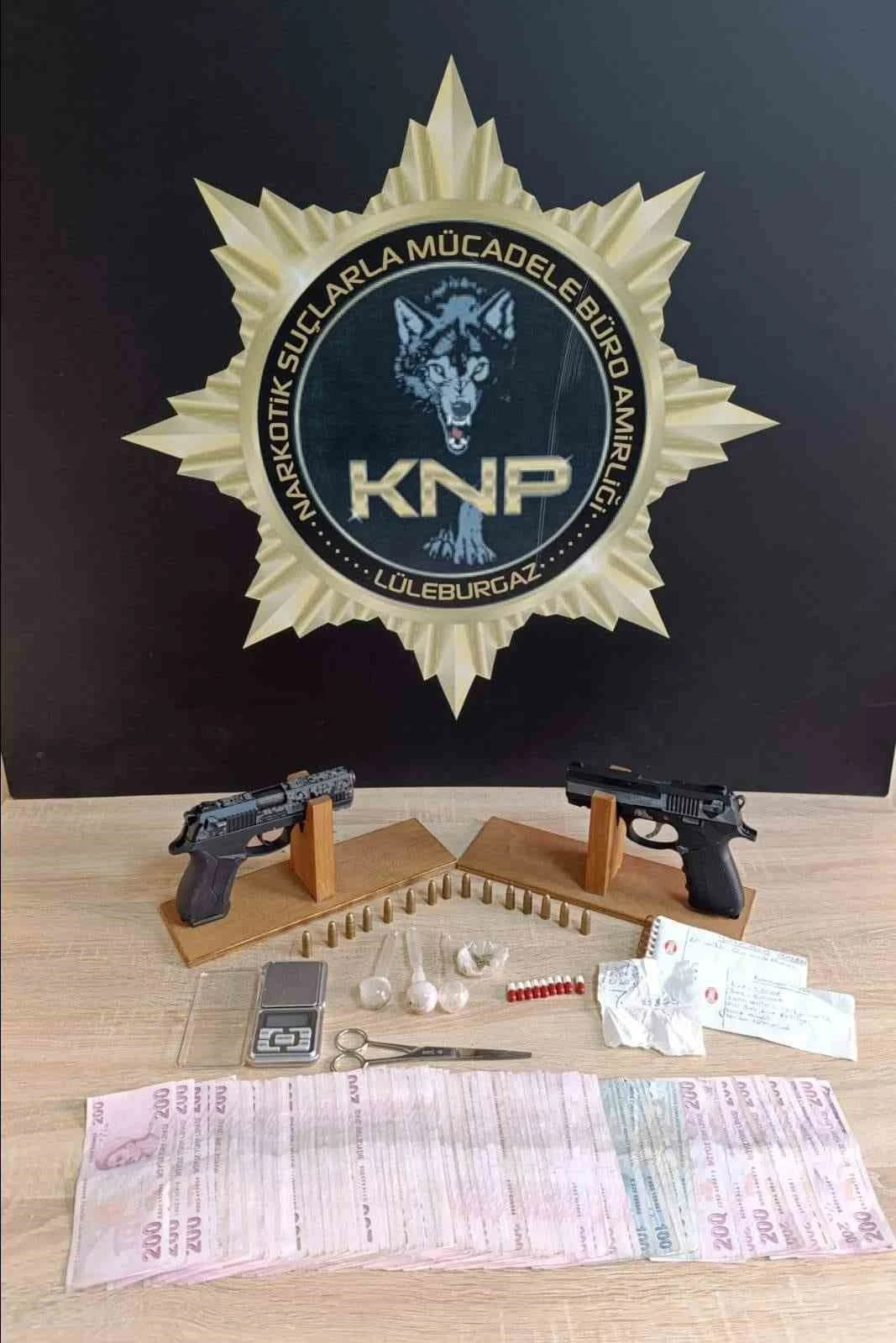 Alınan bilgiye göre, Lüleburgaz ilçesinde uyuşturucu ticareti yapıldığı bilgisi üzerine polis ekipleri harekete geçti. Ekipler 5 adrese eş zamanlı olarak operasyon düzenlendi. Düzenlenen operasyonda 9 adet sentetik ecza, 0.71 bonzai, 1 adet hassas terazi, 3 adet payp, 2 adet ruhsatsız tabanca, 15 adet tabanca fişeği, 24 bin 800 TL suçtan elde edildiği değerlendirilen para ele geçirildi.