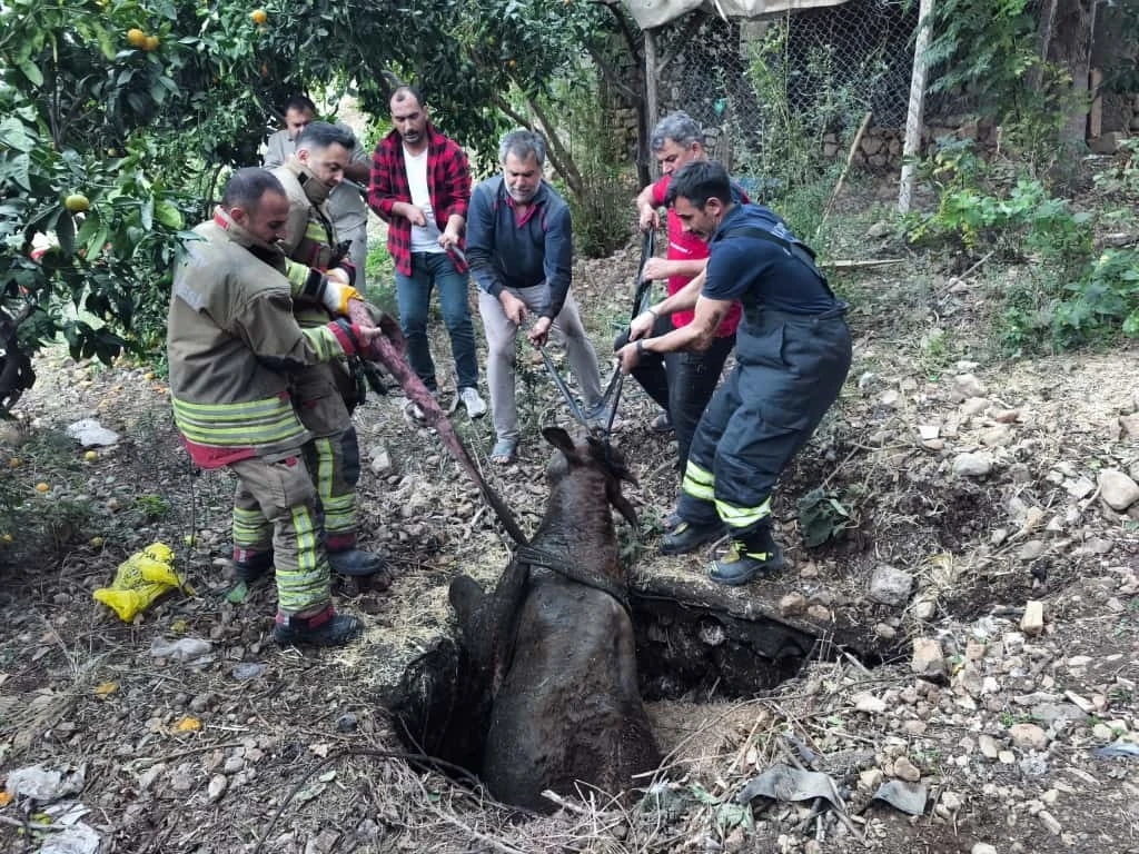 Hatay'da kuyuya düşen inek itfaiye ekipleri tarafından kurtarıldı.