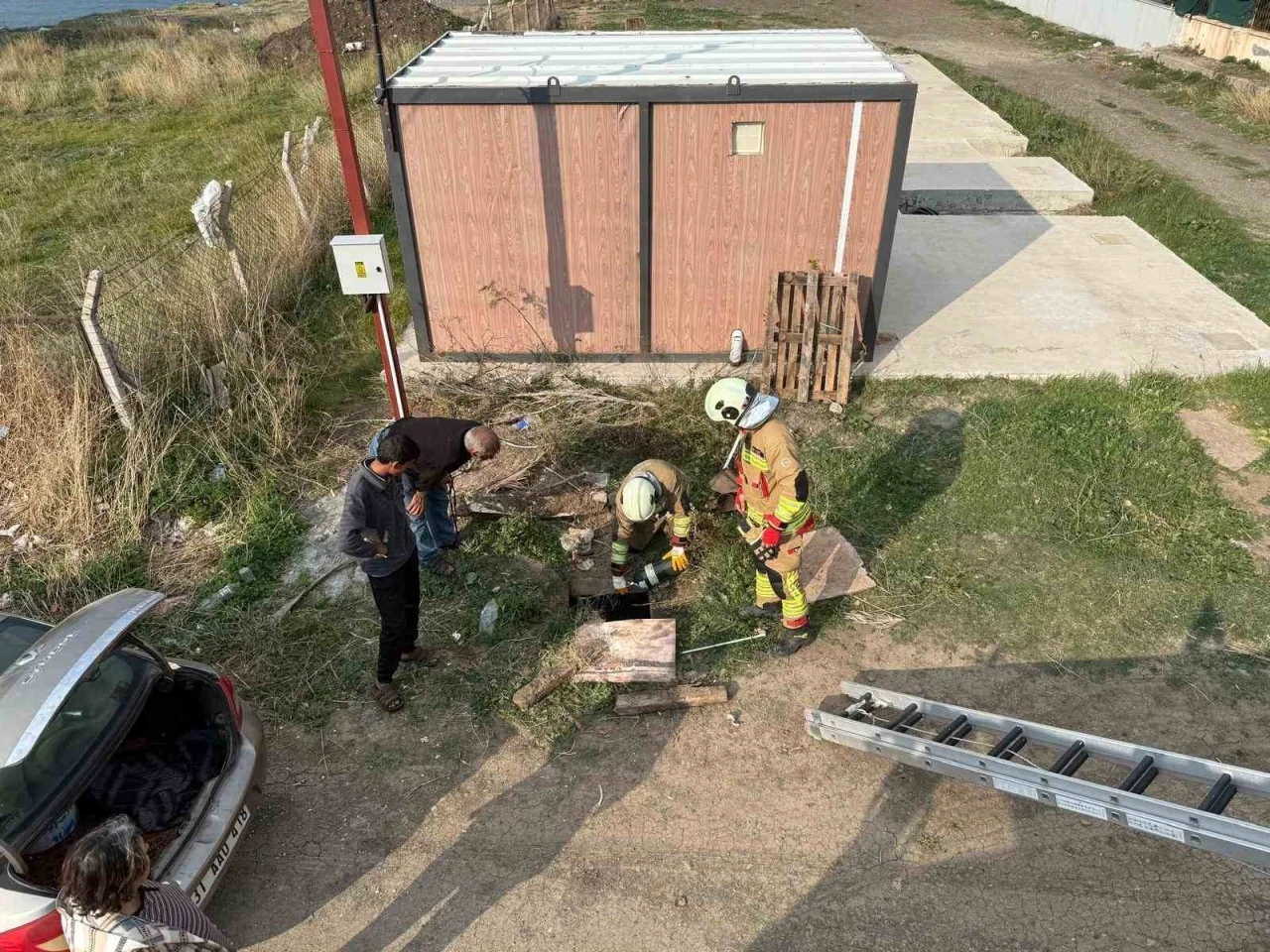 Arsuz ilçesi Arparderesi Mahallesi’nde kuyuya düşen koyunu fark eden sahibi, kendi imkanlarıyla hayvanı kurtaramayınca durumu itfaiye ekiplerine bildirdi. Bölgeye gelerek çalışma başlatan itfaiye ekipleri merdiven yardımıyla kuyuya indi. Başarılı çalışmayla koyunu kurtaran itfaiye ekipleri sahibine teslim etti.