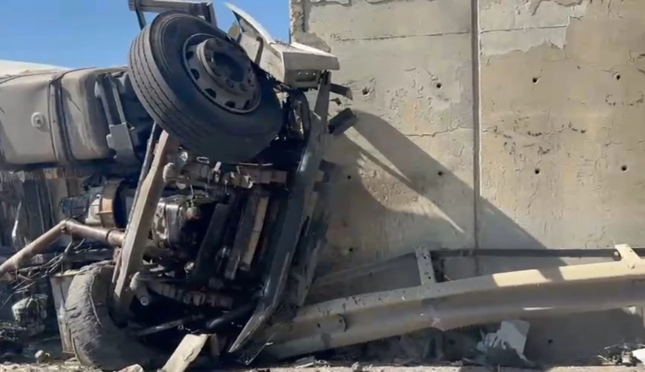 Balıkesir istikametinden Bursa yönüne seyreden Aleddin Aybaş (57) idaresindeki 16 BET 921 plakalı kamyon, lastiğinin patlaması sonucu yol ayrım köprüsüne çarptı. Kazanın etkisiyle kamyonun taşıdığı tutkal boya malzemesi, İzmir istikametine doğru ilerleyen Deniz Başer (35) yönetimindeki aracın üzerine döküldü.