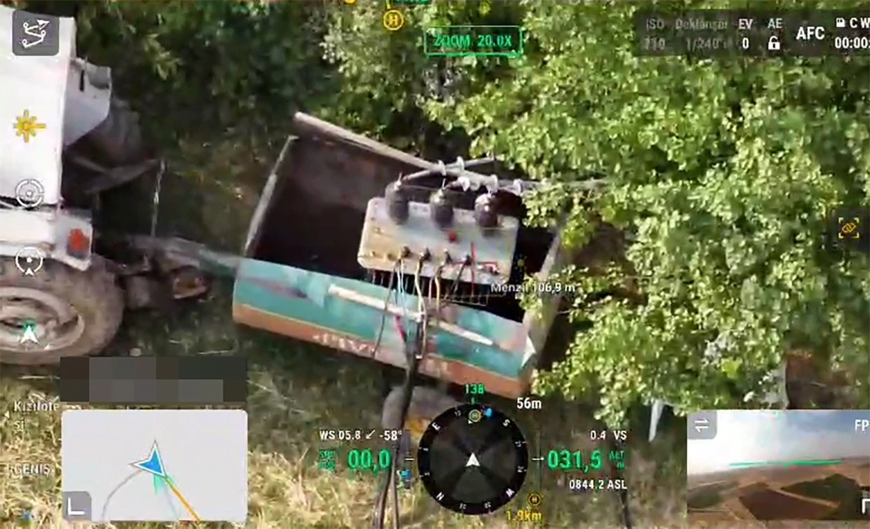 Dicle Elektrik ekiplerinin dron ile tespit ettiği kaçak trafo, bir traktöre bağlı römork üzerindeki tekerlekli su tankeri içine gizlendiği ortaya çıktı. Yerden bakıldığında sıradan bir su tankeri gibi görünen bu düzenek, detaylı dron görüntüleriyle bulundu. Yapılan teknik incelemede, söz konusu trafonun 430 hanenin elektrik ihtiyacını karşılayacak kapasitede olduğu belirlendi. Dicle Elektrik mühendisleri, bu büyüklükteki kaçak trafoların özellikle tarımsal sulama alanlarında şebekeye aşırı yük bindirdiğini, voltaj dalgalanmalarına neden olarak diğer abonelerin enerji kalitesini olumsuz etkilediğini ifade etti. Aynı bölgede yapılan taramalarda 5 kaçak trafo daha tespit edilirken, bu trafoların tamamının yüzlerce metre derinlikten su çekmek için kullanıldığı anlaşıldı.