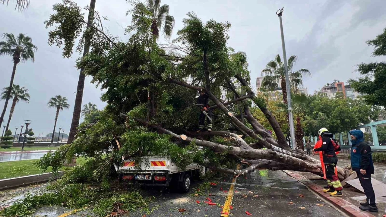 Mersin’de yağmurun etkisiyle kökünden sökülen bir ağaç, yoldan geçen 3 aracın üzerine düşerek hasara yol açtı. Olayda yaralanan olmadı.