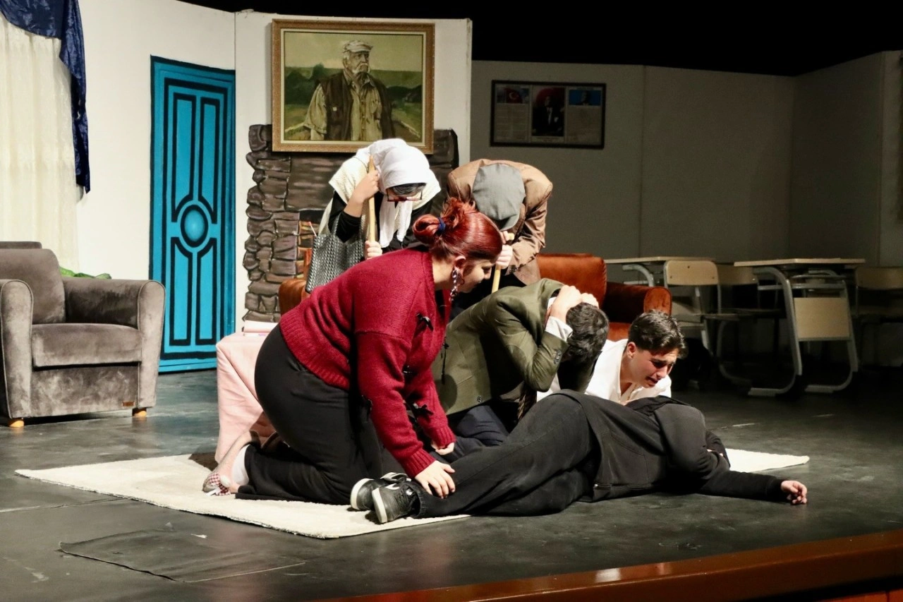 Adıyaman’ın Kahta ilçesinde Mesut Ekni Anadolu Lisesi Tiyatro Topluluğu tarafından "Modem sustu, ev konuştu" adlı tiyatro sahnelendi.