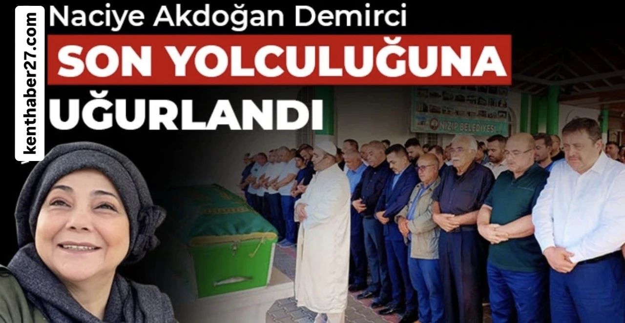 Merhumenin cenazesi, ikindi namazına müteakip Hz. Ali Mezarlık Camii’nde kılınan cenaze namazının ardından Nizip Asri Mezarlığı’nda dualar eşliğinde toprağa verildi.