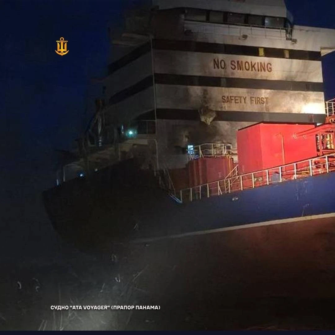 Ukrayna’nın Odessa limanı yakınlarında 12 Ocak tarihinde tahıl almak üzere yaklaşan Türk şirketine ait Panama bandıralı "Ata Voyager" adlı geminin Rusya’nın insansız hava saldırısı aracı (İHA) saldırısında isabet aldığı anlara ilişkin görüntüler ortaya çıktı.