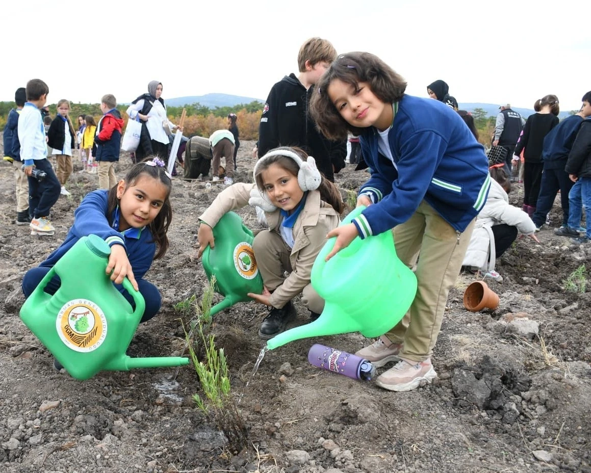 Eskişehir’de ’Yeşil Vatan-Benim Okulum Geleceğe Çare!’ sloganıyla gerçekleştirilen etkinlikte fidanları toprakla buluşturan öğrenciler, geleceğe nefes oldu.