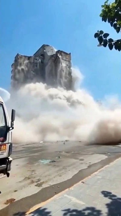 Osmaniye’de 6 Şubat depremleri sonrası en fazla yıkım ve can kaybının yaşandığı Esenevler Mahallesi’nde bulunan 11 katlı Berke Apartmanı’nın yıkımına başlandı. Deprem sonrası orta hasar raporu alan mahkeme süresince hak sahipleri tarafından güçlendirme başvurusu yapılmadığı için yıkım kararı alındı. Yoğun güvenlik önlemi alınarak yıkıma başlanılan binanın kepçe darbesiyle bir bölümünün yıkıldığı an cep telefonu kamerasına yansıdı.