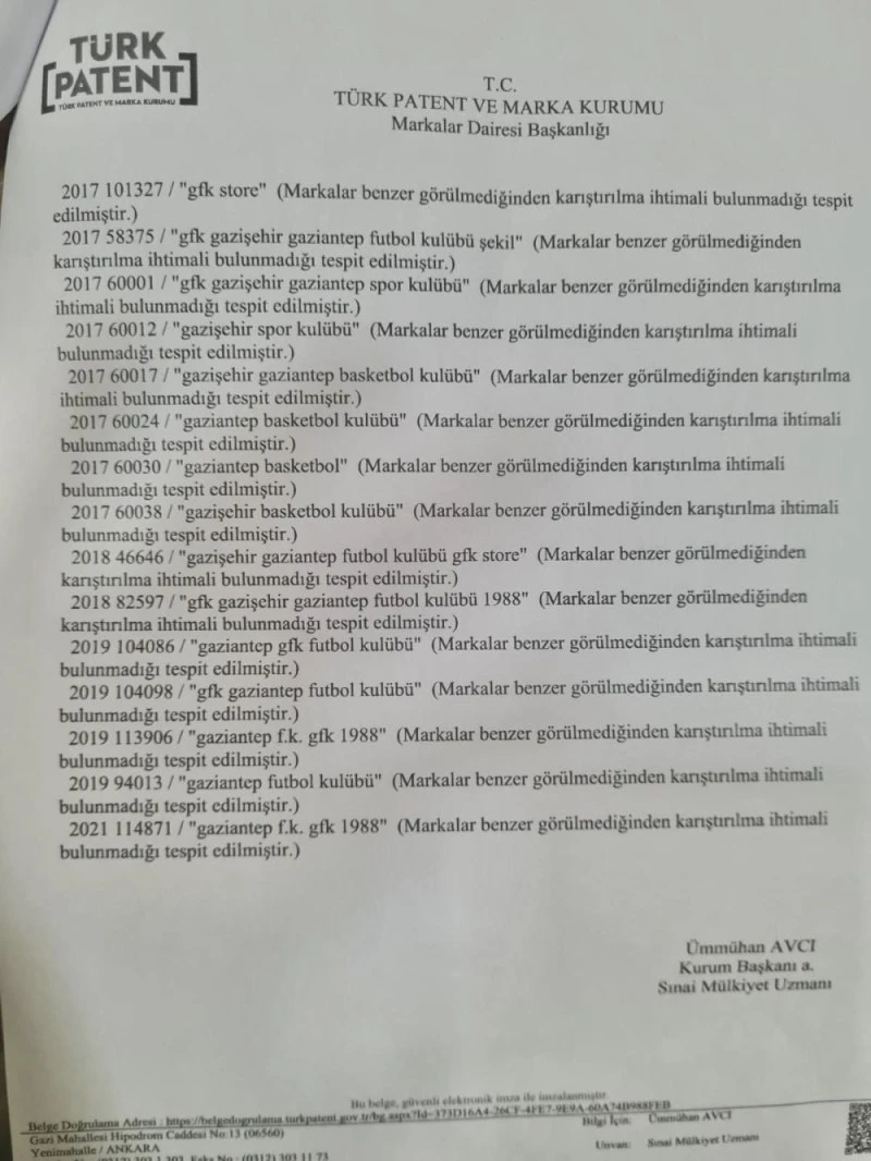 Ancak, sportif faaliyetlerin bu dosyada yer almadığı ileri sürülürken dosyanın içerisinde Gaziantepspor'u ilgilendiren patentin ise Gaziantepspor Böcek İlaçlama patenti olduğu öğrenildi.