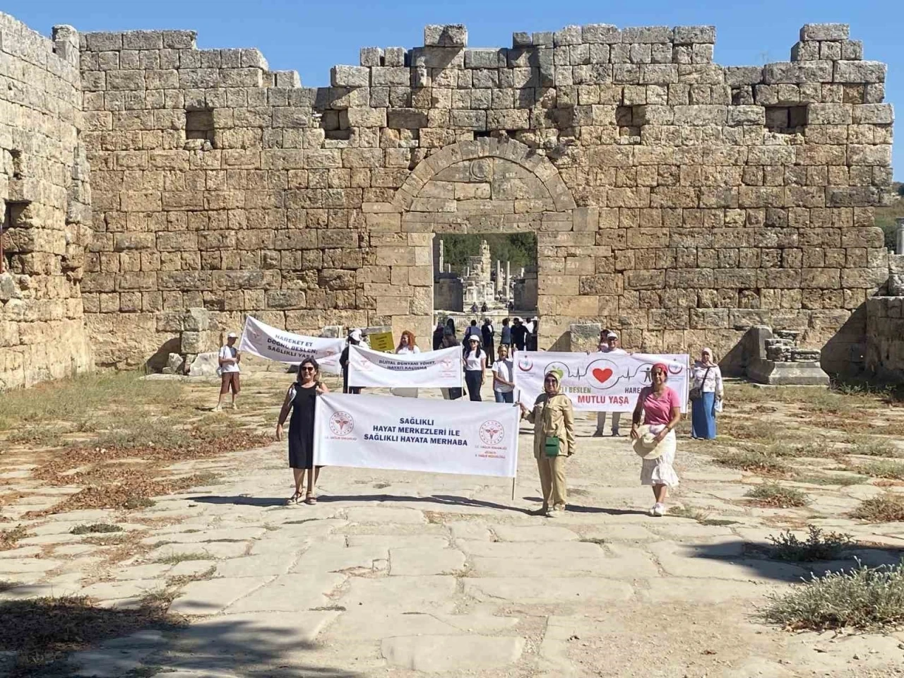 3-9 Eylül Halk Sağlığı Haftası kapsamında Antalya’nın Aksu ilçesinde yer alan Perge Antik Kenti’nde farkındalık etkinliği düzenlendi. Etkinlikte rehber eşliğinde antik kentin tanıtımı yapılırken, katılımcıların boy, kilo ve tansiyon ölçümleri gerçekleştirildi, ardından yürüyüş yapıldı.