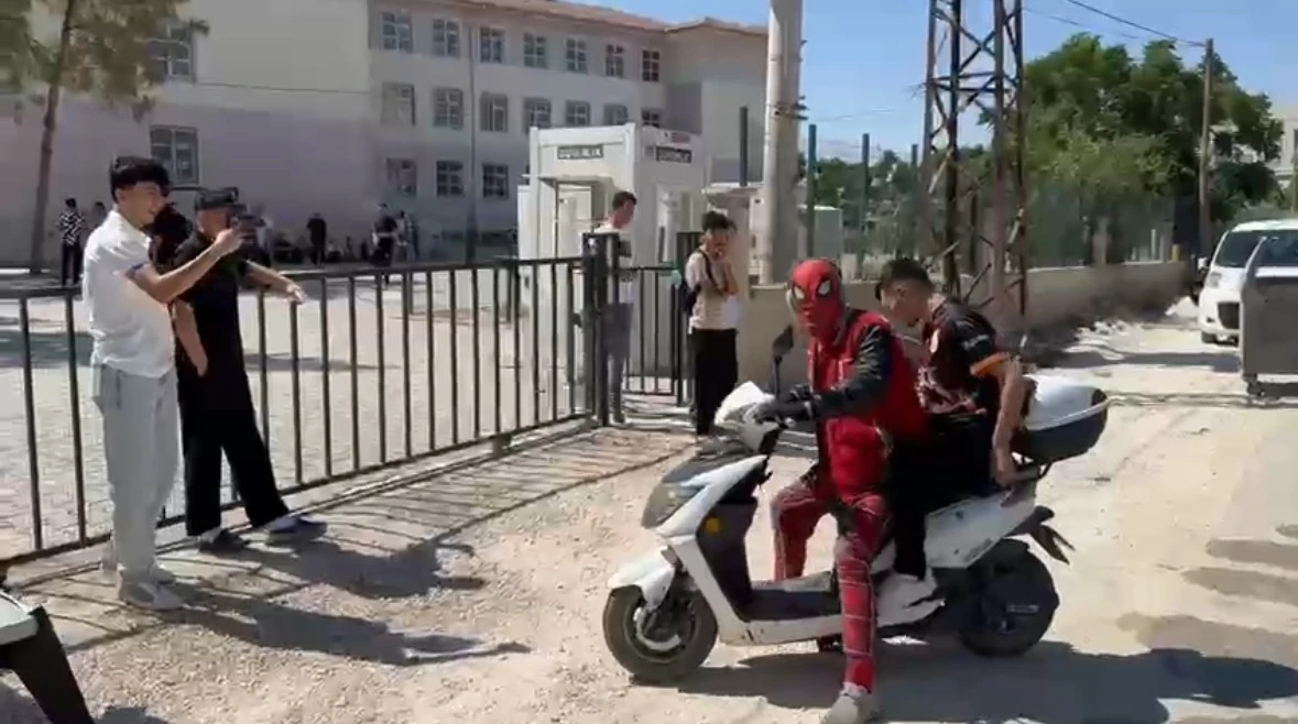 Mardin’de "Pijamalı Örümcek Adam" olarak tanınan Ayaz Salih Koç, Yükseköğretim Kurumları Sınavı’nın ikinci oturumu Alan Yeterlilik Testleri (AYT) sınavına geç kalan bir öğrenciyi sınav merkezine 5 dakika kala yetiştirdi.