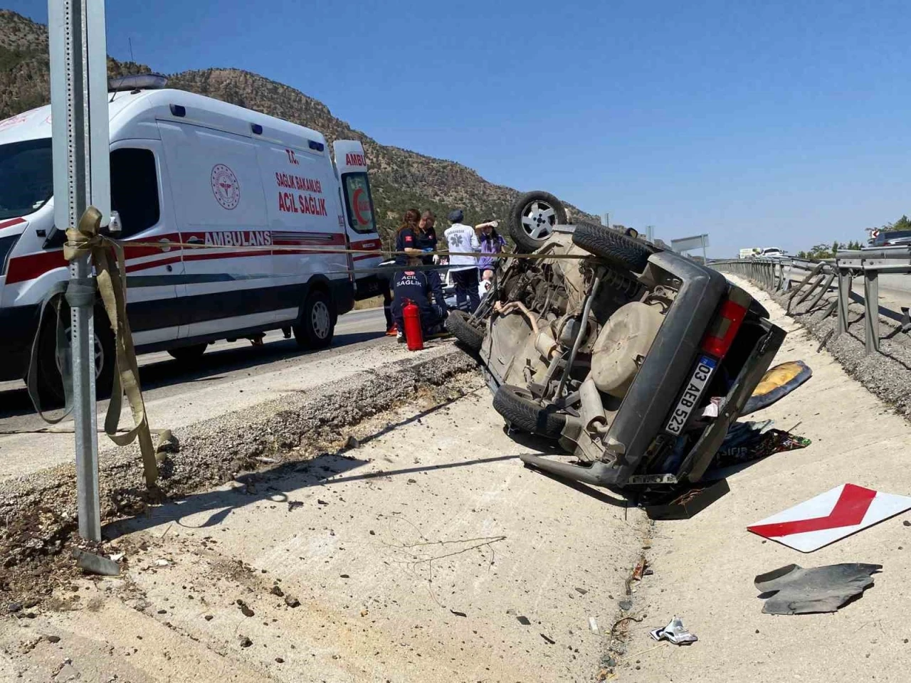 Denizli’de direksiyon hakimiyetini kaybeden otomobil refüje çarparak takla attı. Araçta bulunan 4 kişinin hayati tehlikesi bulunmazken, otomobil kullanılamaz hale geldi.