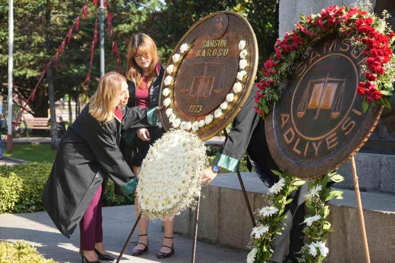 Yeni adli yıl için düzenlenen törende Samsun Cumhuriyet Başsavcı Vekili Turgut Türkmen, Bölge Adliye Mahkemesi Cumhuriyet Başsavcı Vekili Ozan Kaya, Bölge İdare Mahkemesi Başkanı İshak Sağır, Samsun Baro Başkanı Pınar Gürsel Yıldıran ve Samsun Noter Odası Başkanvekili Rukiye Nur Ala, Atatürk Anıtı’na çelenk sundu. Ardından saygı duruşunda bulunuldu ve İstiklal Marşı okundu.