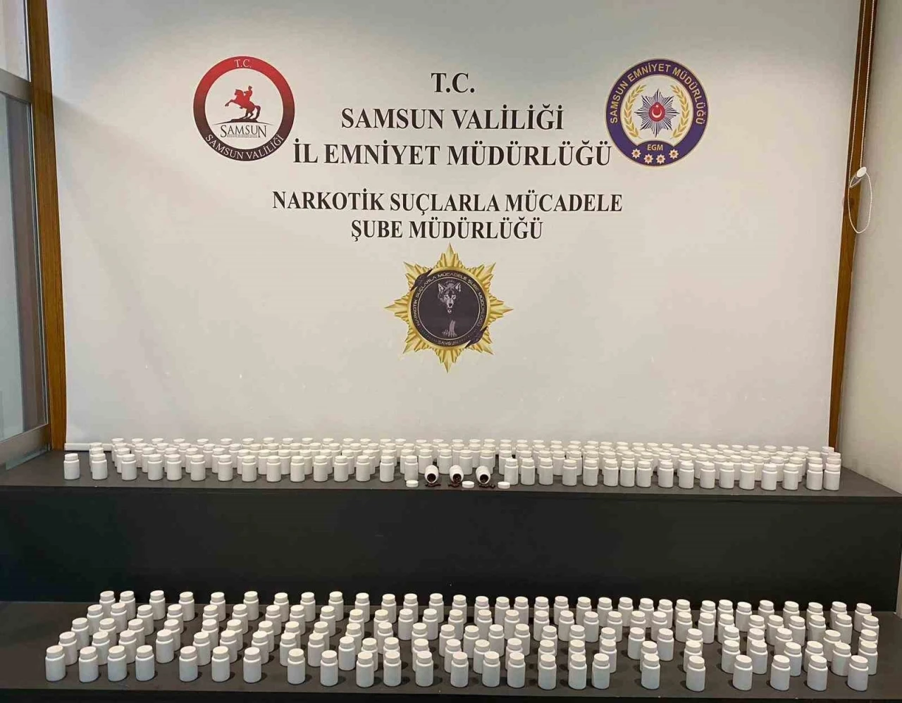 Samsun’da polis tarafından şüphe üzerine bir araçta yapılan aramada, 16 bin 555 adet sentetik ecza ele geçirilirken, olayla ilgili 1 kişi gözaltına alındı.