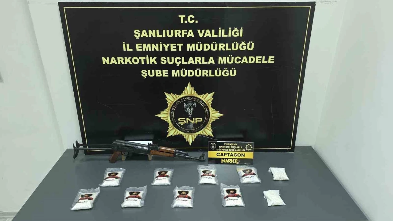 Şanlıurfa Viranşehir İlçe Emniyet Müdürlüğü ekipleri tarafından narkotik suçlarla mücadeleye yönelik belirlenen adrese operasyon düzenlendi. Operasyon kapsamında 1 şüpheli şahsın üzerinde, aracında ve ikametinde yapılan aramalar sonucunda; 10 parça halinde 9 bin adet captagon uyuşturucu hap ile 1 adet AK-47 uzun namlulu tüfek ele geçirildi.