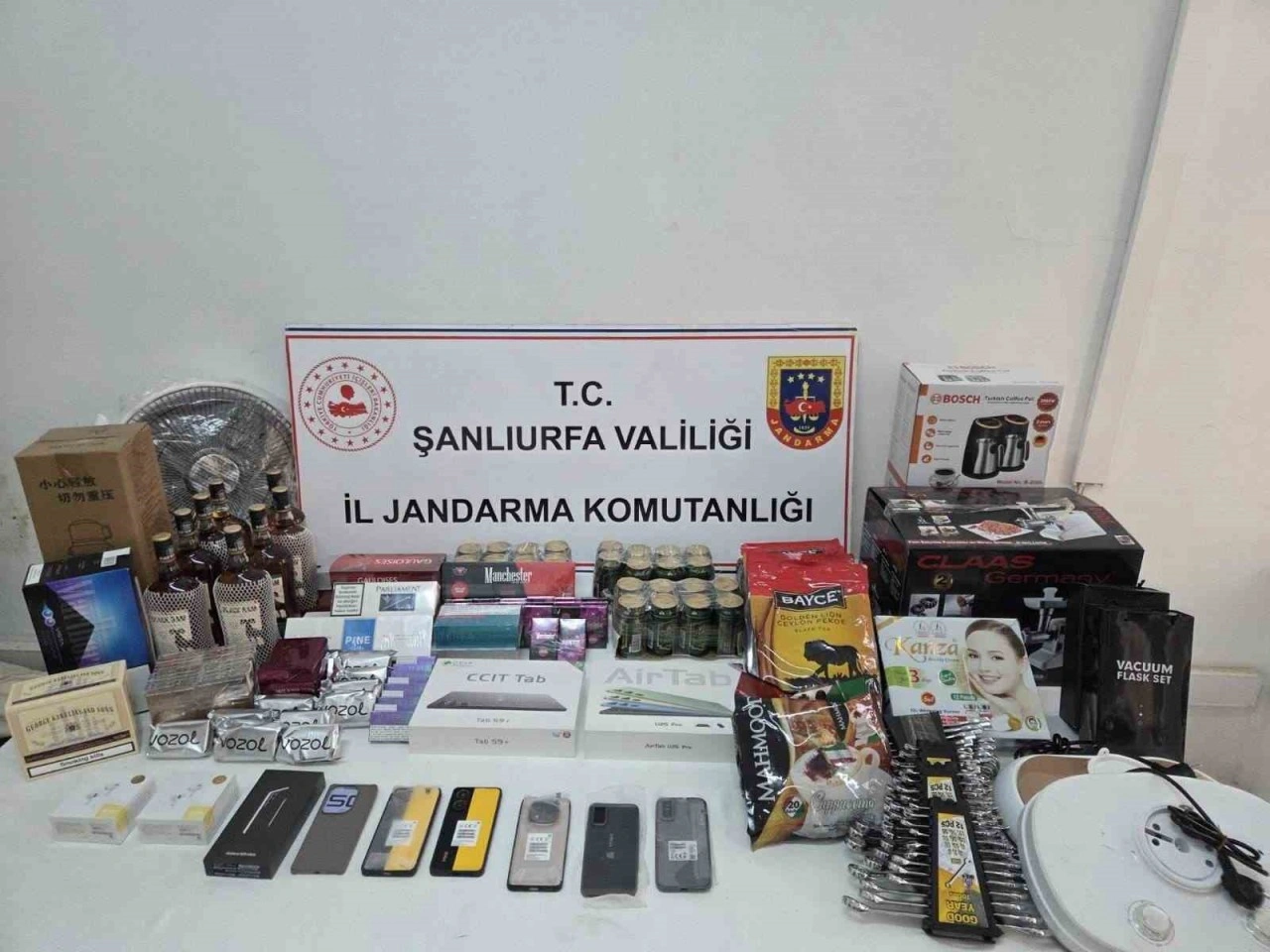 Şanlıurfa İl Jandarma Komutanlığı ekipleri, suç ve suçlularla mücadele kapsamında Suruç ilçesinde düzenledikleri operasyonda çok sayıda gümrük kaçağı ürün ele geçirdi.