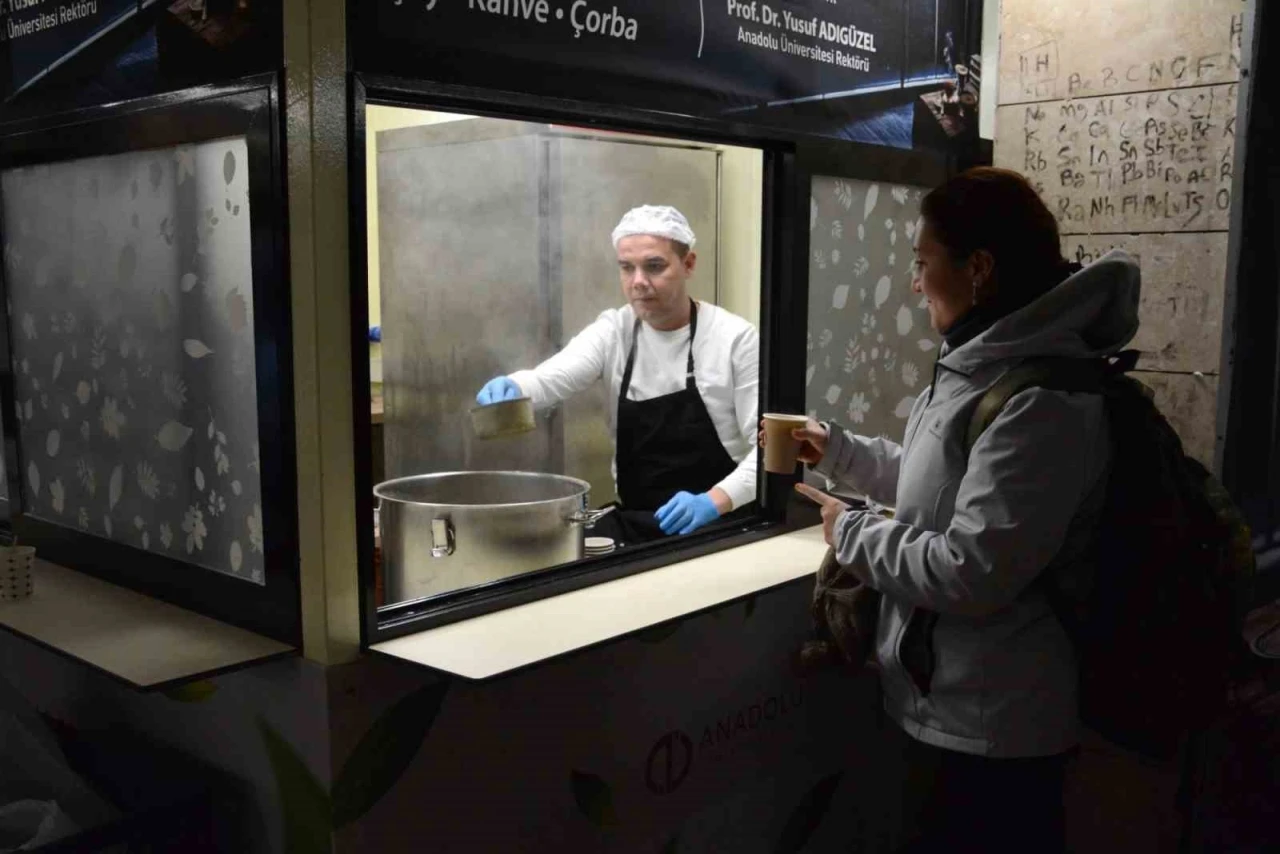 Bu kapsamda, 2025-2026, Akademik Yılı Güz Dönemi ara sınavlarına hazırlanan öğrenciler için, 9-15 Kasım tarihleri arasındaki sınav haftası boyunca, 24 saat açık olan kütüphane önünde akşam 21.00-23.00 saatleri arasında çorba, çay ve kahve ikramında bulunulacak. Anadolu Üniversitesi Kütüphanesi, 7/24 açık yapısıyla öğrencilere konforlu ve güvenli bir ders çalışma ortamı sunuyor. Sessiz ve teknolojik donanıma sahip çalışma alanları, zengin kaynak çeşitliliği ve rahat atmosferiyle öğrencilerin sınav dönemlerinde verimli zaman geçirmelerine imkân tanıyor. Bu uygulamayla öğrenciler, hem ihtiyaç duydukları akademik kaynaklara günün her saatinde ulaşabiliyor hem de yoğun sınav temposunda sıcak bir mola verme fırsatı buluyor.