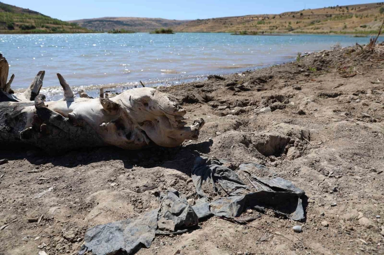 Sivas’ın önemli su kaynaklarından biri olan 4 Eylül barajında kuraklığın etkisiyle su seviyeleri önemli miktarda düştü, barajın zemini görüldü.