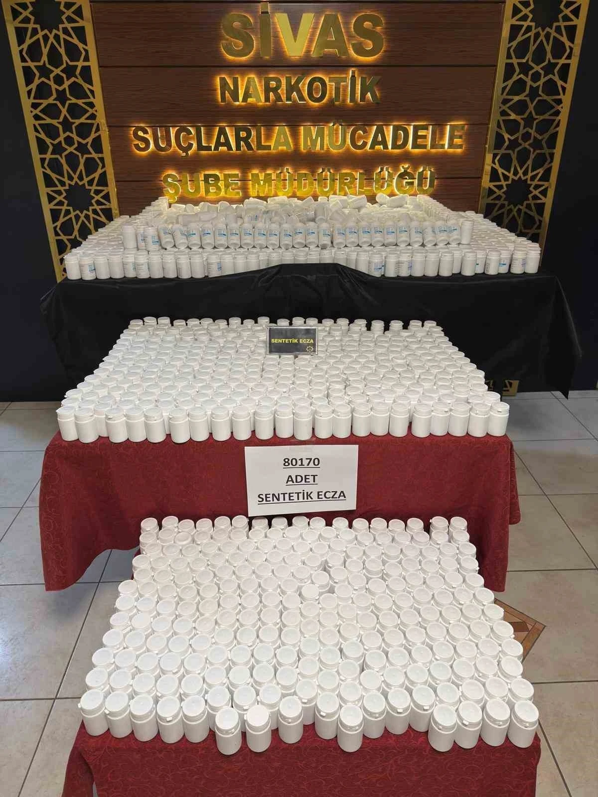 Sivas'ta yılbaşı öncesi narkotik polisinin düzenlediği operasyonda 7 şüpheli yakalandı. Yapılan adli aramalarda 80 bin 170 adet sentetik ecza hapı ve 3,19 gram esrar ele geçirildi. Gözaltına alınan şüphelilerden 3'ü tutuklanarak cezaevine gönderildi.