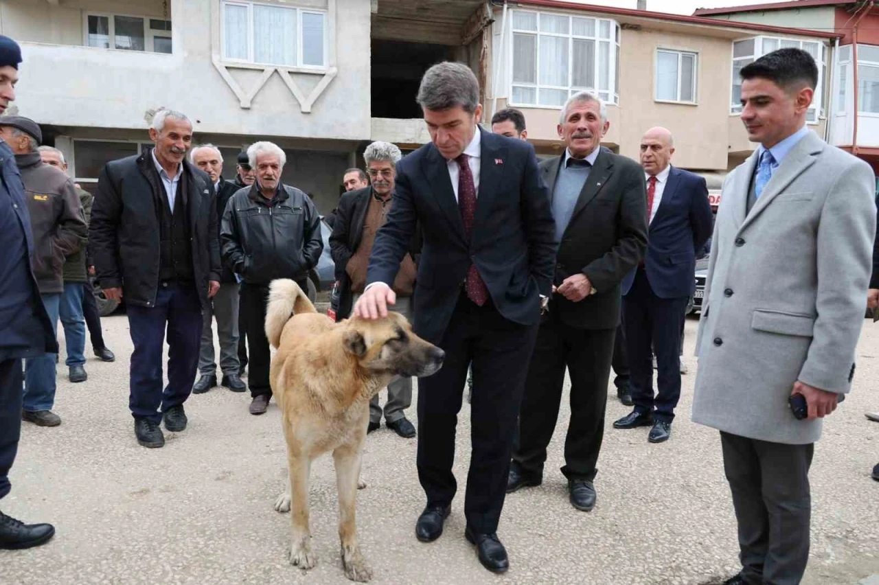 Amasya Valisi Önder Bakan, ziyarette ettiği bir köyde karşılaştığı sokak köpeğine devlet şefkati gösterdi.