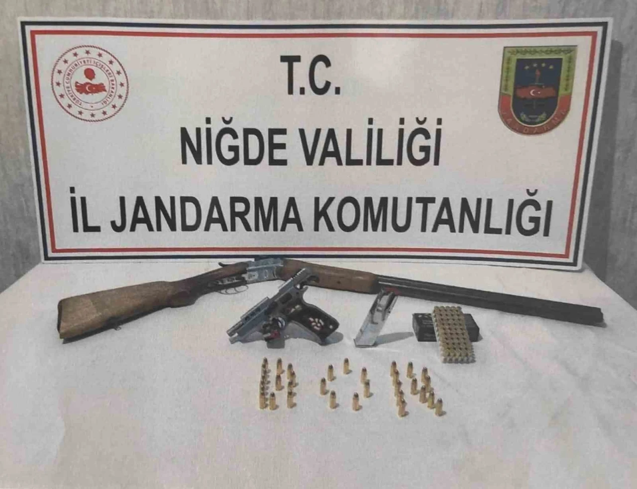 Niğde İl Jandarma Komutanlığı ekipleri; yasadışı bireysel silahlanma ile mücadele kapsamında yaptığı çalışmalarda bir şahsın meskûn mahalde ateş açtığı anları sosyal medya hesabından yayınladığını tespit etti. Belirlenen adrese yapılan baskında; şahsın evinde eşine ait bulundurma ruhsatlı bir tabanca, tabancaya ait iki şarjör ve 83 adet 9 mm çapında fişek ile ruhsatsız bir av tüfeği ele geçirildi.