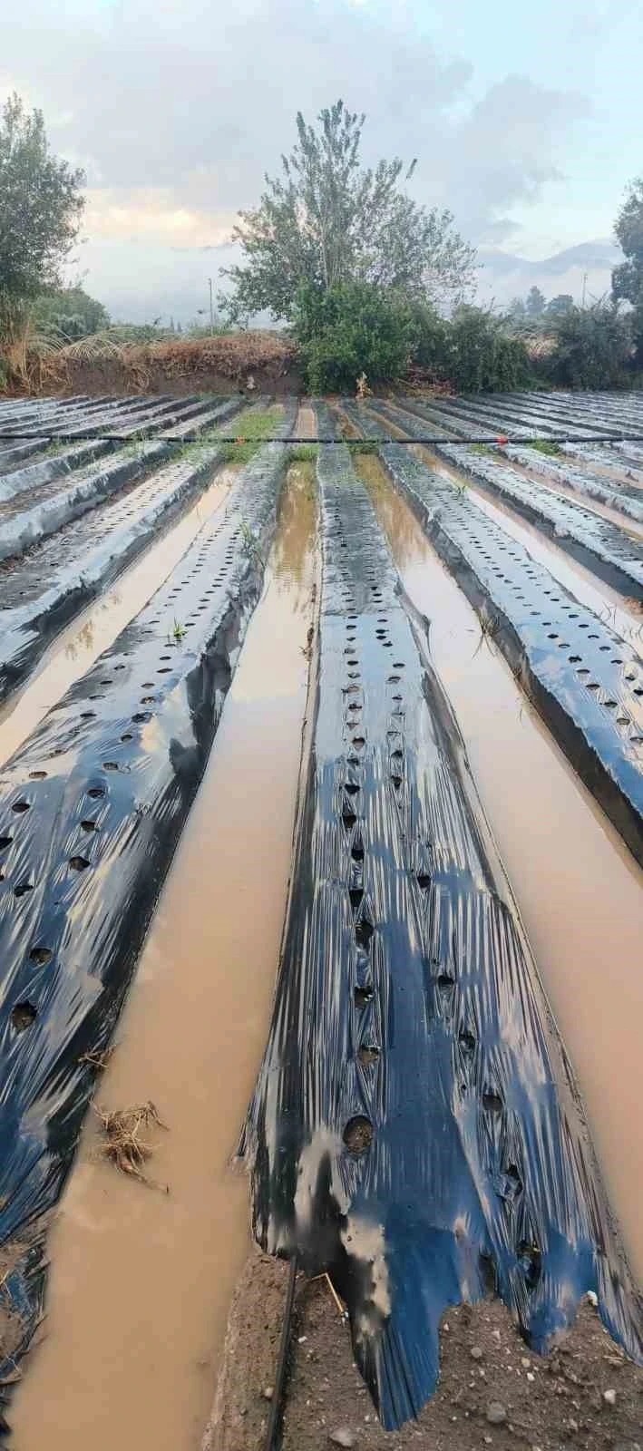 Aydın’da etkili olan sağanak yağış hayatı olumsuz etkilerken çilek üretimiyle ön plana çıkan Sultanhisar ilçesinde tarlalar sular altında kaldı. Sultanhisar ilçesine bağlı Atça Mahallesi’nde aralıksız süren sağanak yağış tarım arazilerinde su taşkınlarına neden oldu. Özellikle bölge ekonomisinin can damarı olan çilek tarlaları, kısa sürede biriken yağmur sularıyla dolup taştı. Bazı üreticiler, tarlalarına dolan suyu kendi imkanlarıyla tahliye etmeye çalışırken, çilek fidelerinin bir kısmının çamur altında kaldığı görüldü. Yetkililer, yağışların önümüzdeki günlerde de yer yer etkili olabileceği uyarısında bulunarak üreticilerin dikkatli ve tedbirli olmalarını istedi.