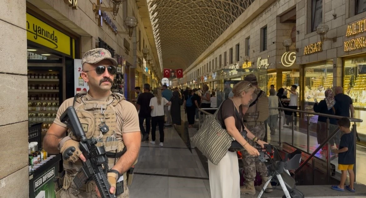 Çelik yelekli, otomatik silahlı özel harekat timleri Kapalıçarşı’nın giriş çıkışlarında ve kalabalık noktalarda sürekli devriye geziyor. Güvenliğin en üst seviyeye çıktığı Kapalıçarşı’da, tarihi dokuya eşlik eden özel harekat manzarası ziyaretçilerin ve turistlerin dikkatini çekiyor, cep telefonlarıyla da kaydediliyor.