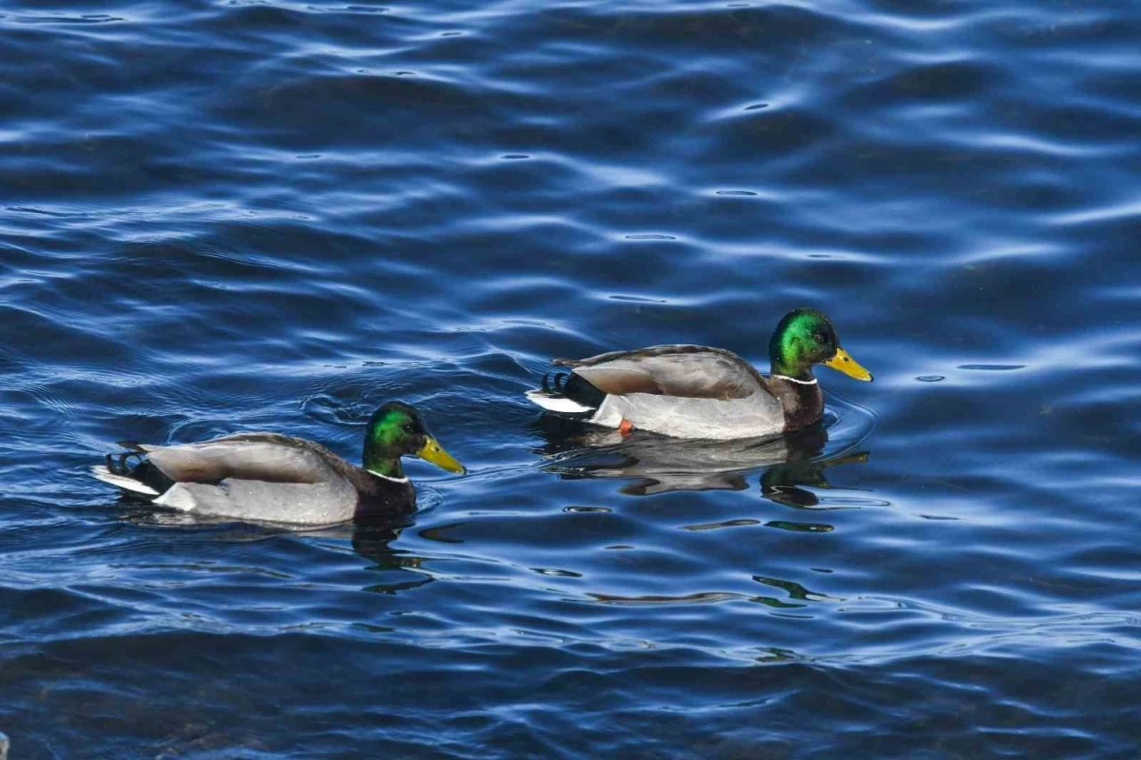 Van Gölü’nün eşsiz manzarasıyla bütünleşen yeşilbaş ördekler, bölgenin doğal zenginliğini bir kez daha gözler önüne serdi.