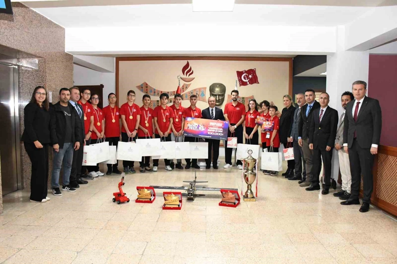 TEKNOFEST İstanbul yarışmalarına Eskişehir’den katılarak derece elde eden öğrenciler, İl Milli Eğitim Müdürü Sinan Aydın’a ziyarette bulundu.