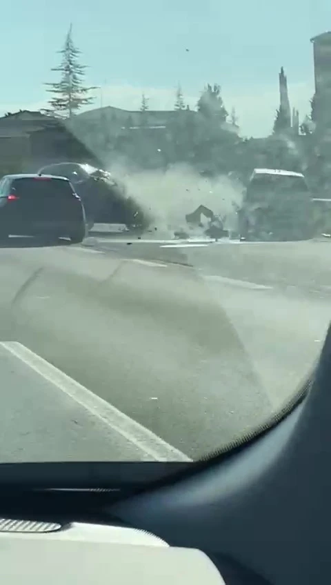 Kaza, dün Kocaeli TEM Otoyolu’da meydana geldi. İddiaya göre, içinde bebek ve çocuğun bulunduğu bir otomobil, başka bir araç sürücüsü tarafından defalarca sıkıştırıldı. Ani fren yaparak ve makas atarak ilerleyen sürücü, ailenin bulunduğu otomobili seyir halindeyken tehlikeye soktu. Bir süre böyle devam eden yolculuk sonrasında maganda sürücü, çocuklu aileyle birlikte toplam 4 araca çarparak kaza yaptı. O anlar, sıkıştırılan aile tarafından cep telefonu kamerası ile görüntülendi. Görüntülerde araçta bebek ile çocuğun olduğu görülürken, kazaya ilişkin anlar yer aldı.