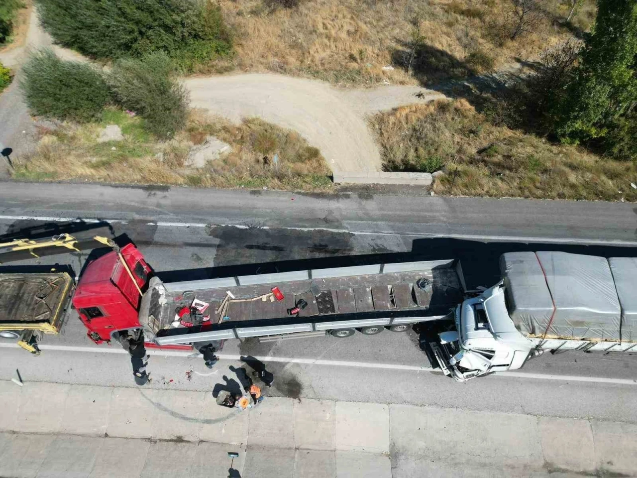 Kaza, karayolunda trafik bir süre tek yönlü olarak sağlanırken, olayla ilgili jandarma tarafından inceleme başlatıldı.