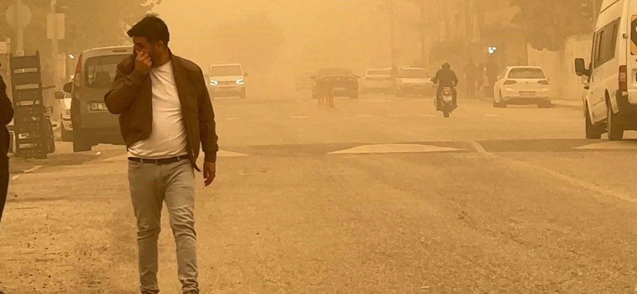 Suriye üzerinden gelen toz bulutu Şanlıurfa merkez ve sınır ilçesi Ceylanpınar’da gökyüzünü kapladı. Hayatı olumsuz etkileyen toz bulutundan korunmak için bazı vatandaşlar maske ile gezdi.