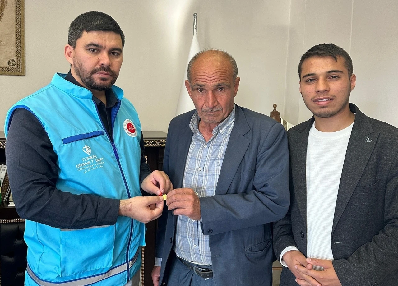 Trafik kazasında ölen kızının kazandığı altın ödülü filistin’e bağışlandı. Baba hanifi şimşek (ortada) ilçe müftüsü ahmet kızmaz (solda)uzuntepe köyü imam hatibi abdussamed yapıcı (sağda)