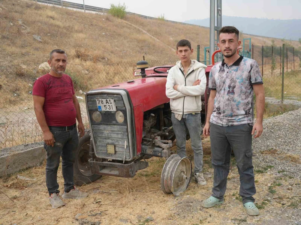 Kastamonu’nun Araç ilçesinde, orman ekiplerine tankerle su taşıyan gençler, traktörün lastiğinin patlamasına aldırış etmeyerek jant üzerinde yollarına devam etti. O anlar cep telefonu kamerasına yansıdı.