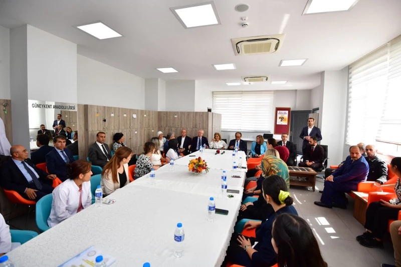 Konuşmaların ardından okulun açılış kurdelesi kesilirken Vali Davut Gül ve protokol üyeleri okulu gezerek öğretmen ve öğrencilerle bir araya geldi.