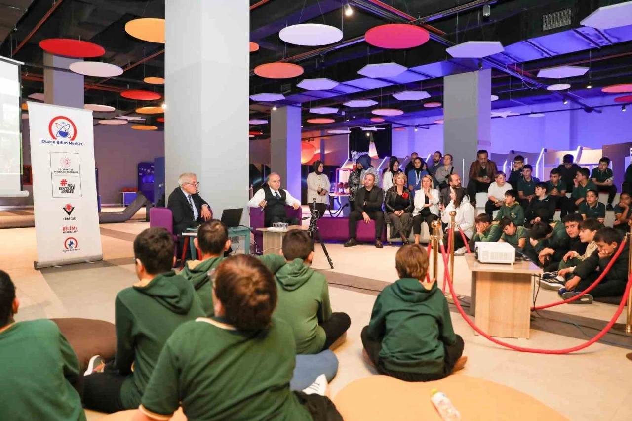 Düzce Bilim Merkezi, Türkiye’deki bilim merkezleri ile ortak düzenlenen konferansa katıldı. İstanbul Üniversitesi Fen Fakültesi Astronomi ve Uzay Bilimleri Bölümü Genel Astronomi Ana Bilim Dalı Öğretim Üyesi Prof. Dr. Ahmet Talat Saygaç’ın "Uzay Meslekleri" sunumu yaptığı etkinlikte Düzce Belediye Başkanı Dr. Faruk Özlü de öğrencileri yalnız bırakmadı.