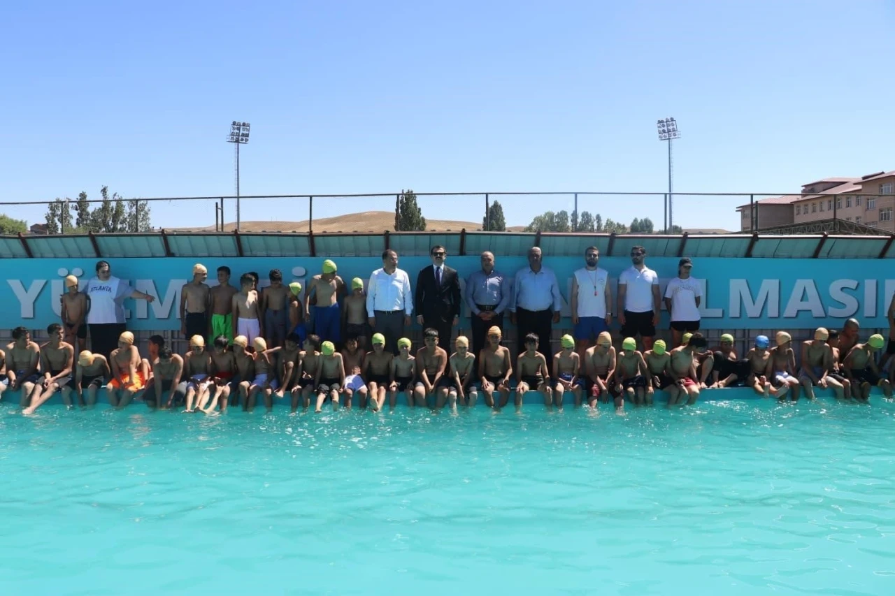Ağrı’nın Tutak ilçesinde hizmete giren portatif yüzme havuzu, düzenlenen programla ziyaret edildi.