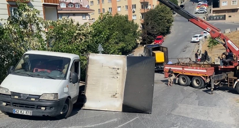 Ümraniye’de dik yokuşta seyir halinde olan kamyon şoförün direksiyon hakimiyetini kaybetmesi sonucu kaldırıma çıktı. Kazada kamyon kasasındaki jeneratör yola devrildi.