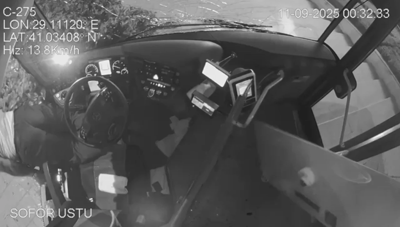 Görüntülerde, şoförün çarpmanın etkisiyle otobüs camına sıkıştığı ve bir süre bu şekilde ilerlediği görülüyor.