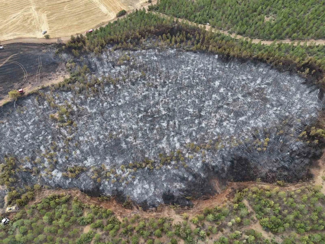 Öte yandan, yangında zarar gören alanlar dron ile havadan görüntülendi.