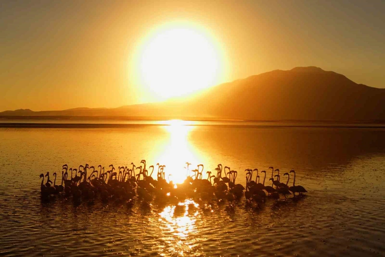 Bitlis’in Adilcevaz ilçesine bağlı Akçıra ve Yarımada köylerinin Van Gölü sahillerinde konaklayan flamingoların gün batımında ortaya çıkan görüntüleri hayranlık uyandırdı.