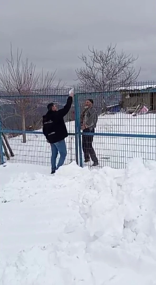 Amasya’da yaşadığı mezranın yolu kardan kapanan kalp ve tansiyon hastası yaşlı kadına ilaçları kepçeyle ulaştırıldı.